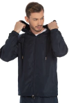 Jaqueta com entradas de ar no peito e na parte superior das costas fabricada em tecido leve com a tecnologia WR. Forro em aspecto de tela e em poliamida, promovendo um toque gelado e alta transpirabilidade. Possui capuz com cadarço para ajuste na cabeça, elástico embutido no punho e cordão elástico na barra para ajuste manual na cintura. Termocolante refletivo da tocha da Parolli na parte inferior esquerda das costas da jaqueta.